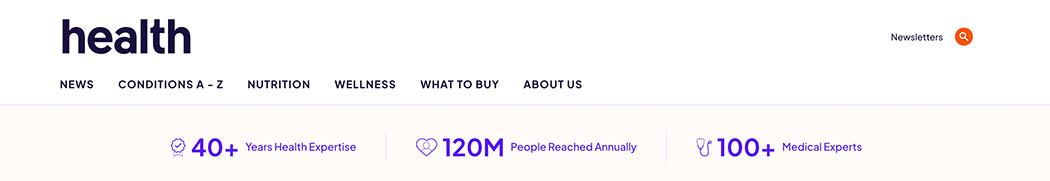 Health.com puts social proof at the top of the blog homepage: